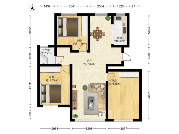 房屋戶型: 3 室2廳 1 廚1衛(wèi)