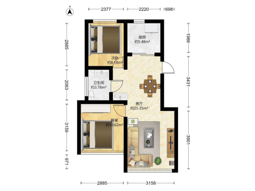 房屋戶型: 2 室2廳 1 廚1衛(wèi)