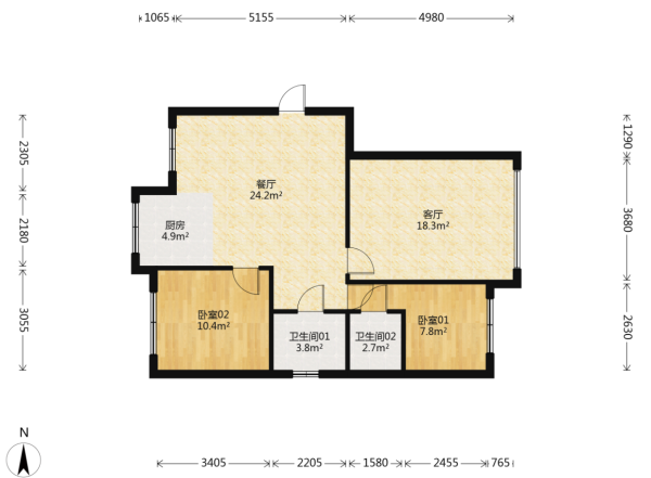 房屋戶型: 3 室1廳 1 廚2衛(wèi)