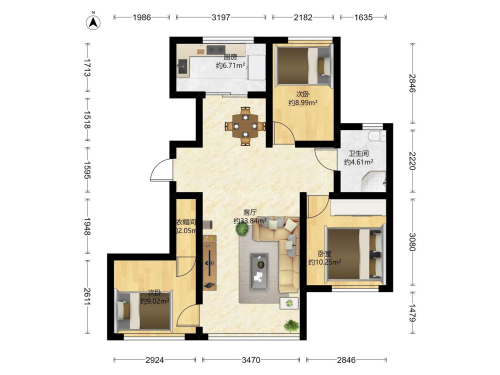 房屋戶型: 3 室2廳 1 廚1衛(wèi)
