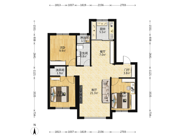 房屋戶型: 3 室2廳 1 廚2衛(wèi)