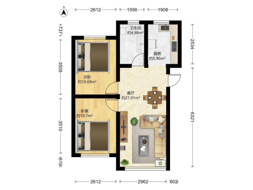 房屋戶型: 2 室2廳 1 廚1衛(wèi)