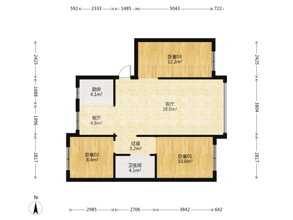 房屋戶型: 3 室2廳 1 廚2衛(wèi)